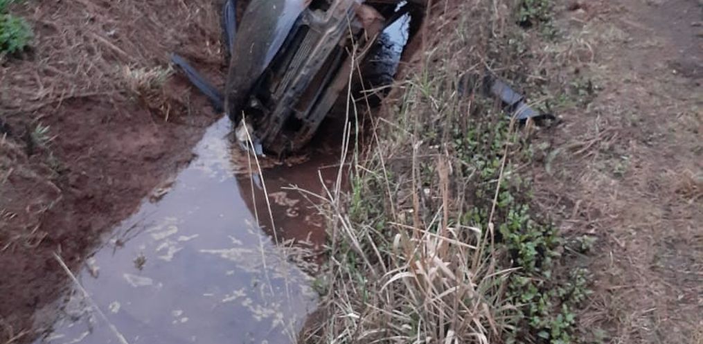 O veículo encontrava-se dentro da valeta lateral à pista e a vítima, um jovem de 23 anos, estava caído dentro da sarjeta com água.