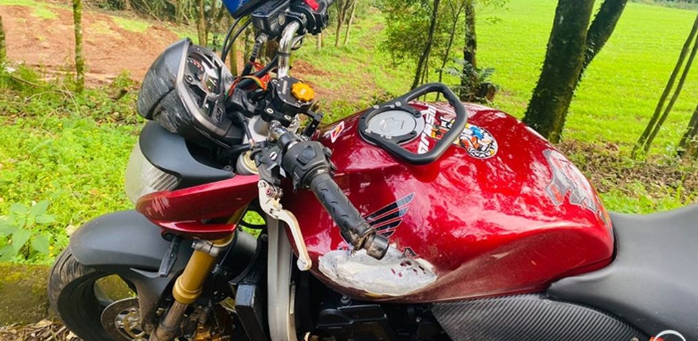 O condutor de uma Hornet CB 600 F, de Mondaí, sofreu a queda de sua motocicleta e teve ferimentos pelo corpo. O Corpo de Bombeiros de Itapiranga foi acionado e conduziu o jovem até o Hospital de Itapiranga. Ele sofreu cortes nos joelhos, fratura nos dois dedos da mão esquerda e escoriações.