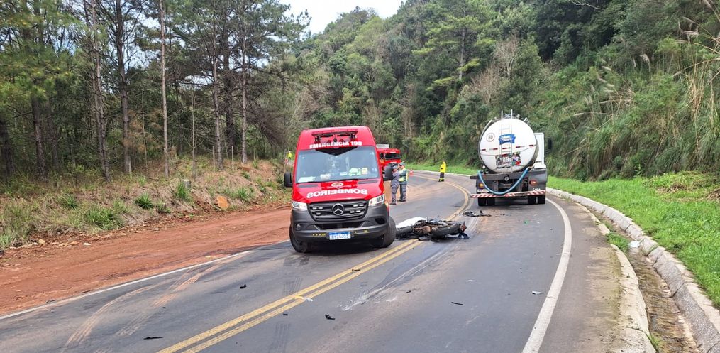 Segundo a Polícia Militar Rodoviária (PMRv), a batida envolveu um caminhão VW 17.250, de Chapecó, e uma motocicleta Honda CB300F, de Entre Rios. O caminhão era conduzido por um jovem de 20 anos, que não se feriu. Já na moto estavam dois jovens de 19 anos.