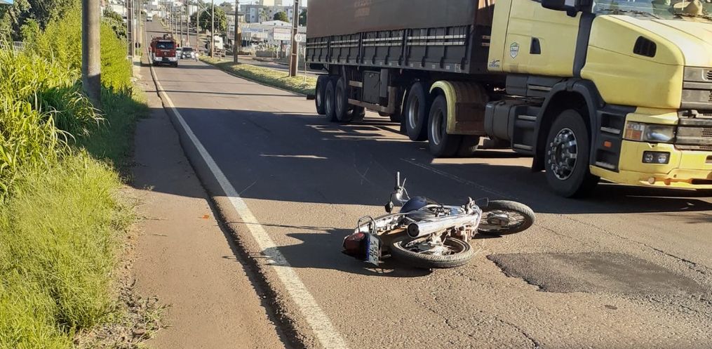 Segundo o motorista do caminhão, que seguia sentido trevo de acesso a cidade BR-282, o motociclista saiu de uma via lateral e acabou colidindo ao lado do caminhão e por muito pouco não foi parar em baixo do veículo. Ele comentou ainda, para a reportagem que o jovem que conduzia a moto ‘nasceu de novo’.