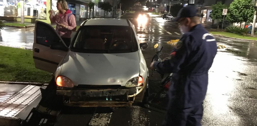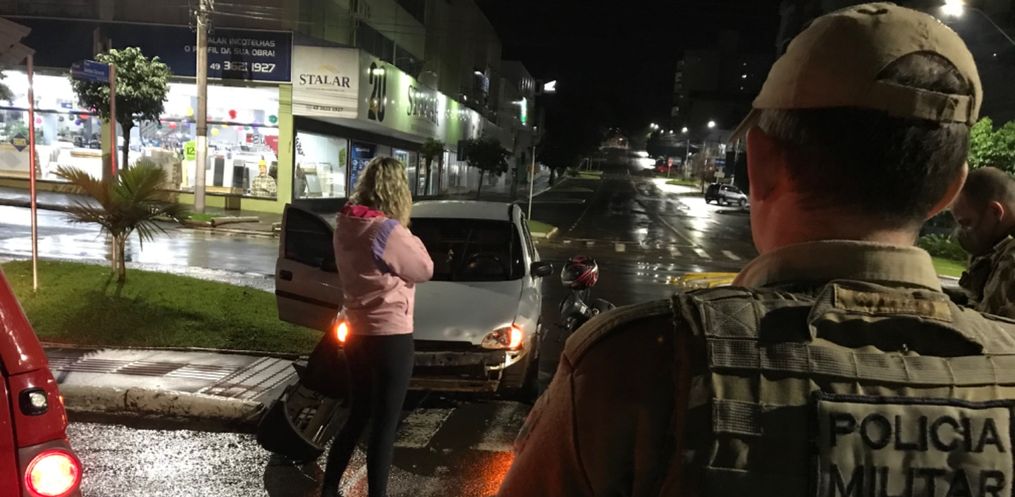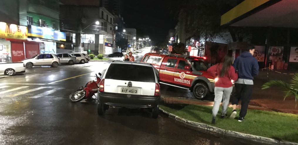 Uma colisão lateral envolvendo um Corsa de São João do Oeste e uma motoneta Honda Biz, deixou uma jovem ferida. O acidente aconteceu por volta das19h30 deste domingo,05, na Rua Santos Dumont proximidades da Stalar Materiais de construção.