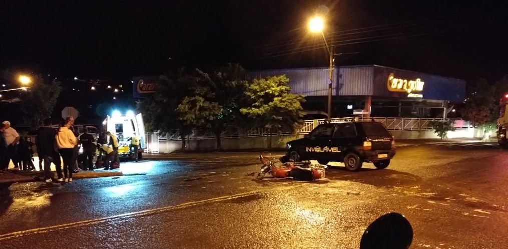 Uma colisão envolvendo carro e motocicleta deixou um jovem ferido em São José do Cedro. Os bombeiros foram acionados por volta das 21h15 desta quinta-feira, 07, para se deslocar até a Rua Odilo Antonio Link, cruzamento com a Rua Salete Uliana, no Centro, para atender a ocorrência.