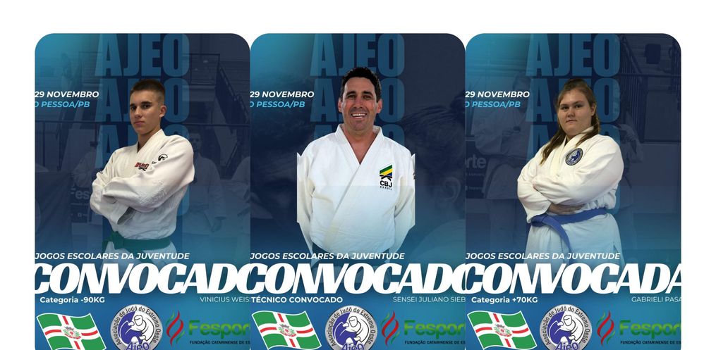 Vinicius Weiss e Gabrieli Borsatto, judocas campeões na etapa estadual do Jesc, foram selecionados para representar Santa Catarina nos Jogos da Juventude em João Pessoa, entre 12 e 29 de novembro. Os atletas se destacaram nas categorias -90kg masculino e +70kg feminino, respectivamente, assegurando lugar na maior competição de base do Brasil, organizada pelo Comitê Olímpico Brasileiro (COB).