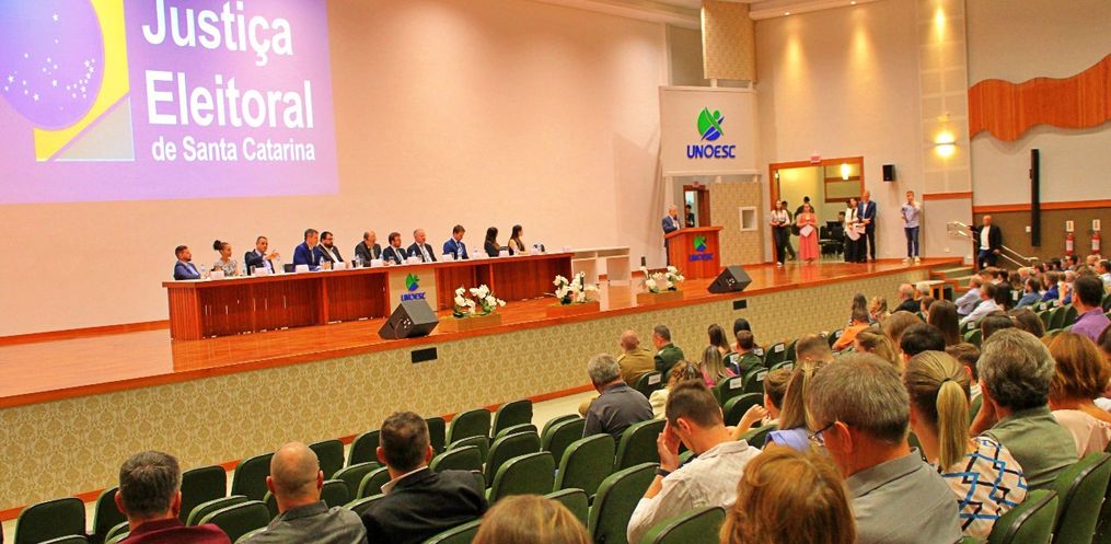 A Justiça Eleitoral realizou, na noite desta segunda-feira, 16, a cerimônia de diplomação dos prefeitos, vices e vereadores eleitos no pleito de outubro. O evento aconteceu no Centro Cultural da Universidade do Oeste de Santa Catarina (UNOESC), em São Miguel do Oeste, e contou com representantes das 45ª e 82ª Zonas Eleitorais.
