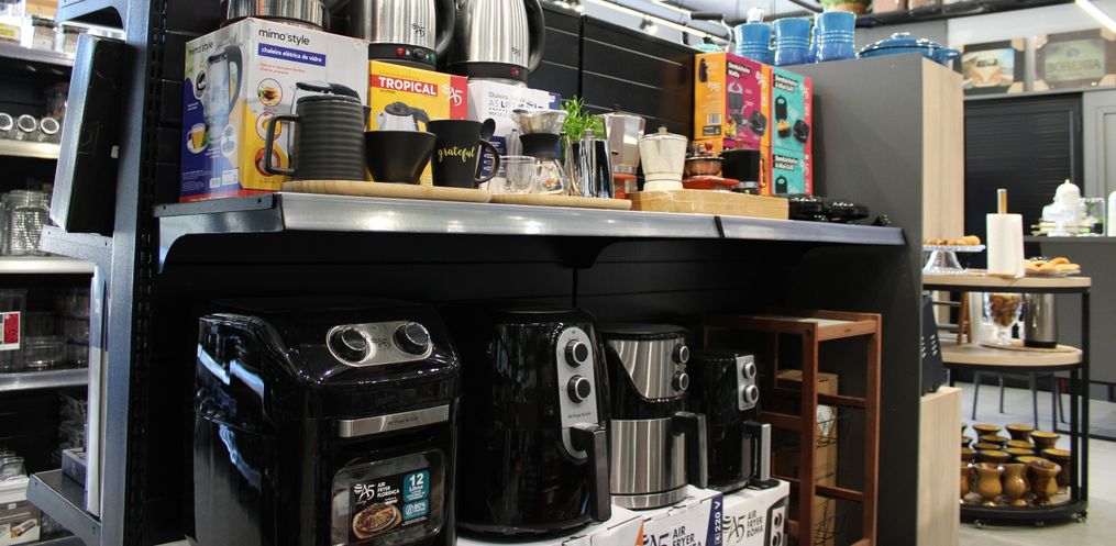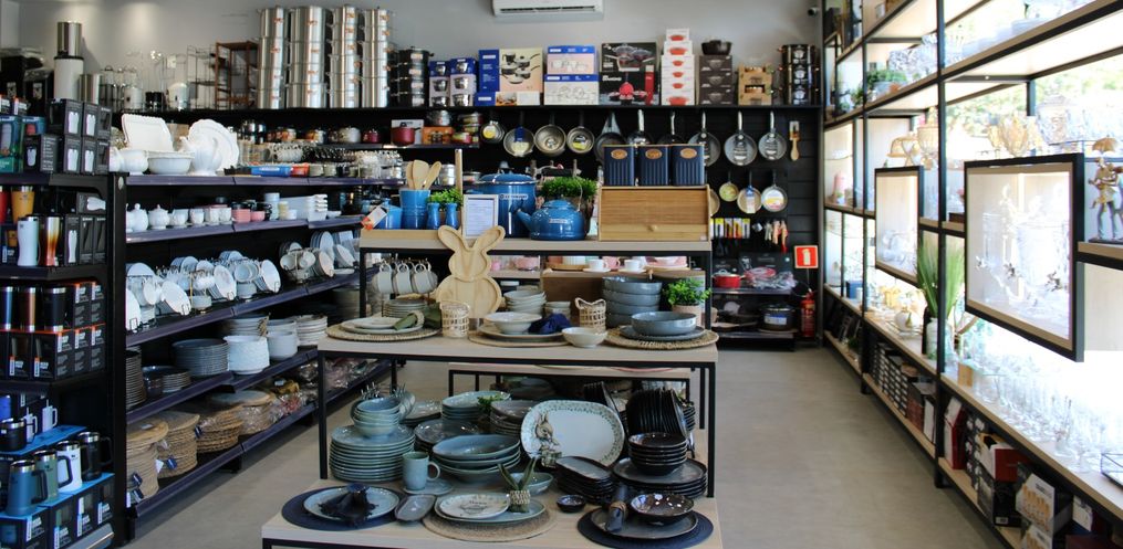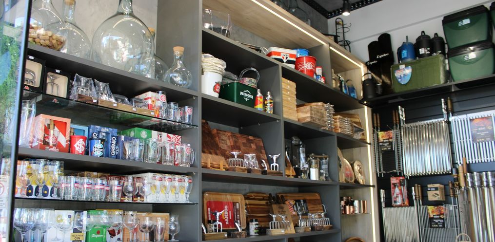 Na Kaza Divina tem toda a linha de churrasco, presentes, completo artigo de cozinha, marcas de cristais, tudo que uma casa precisa para ter uma aparecia mais moderna.