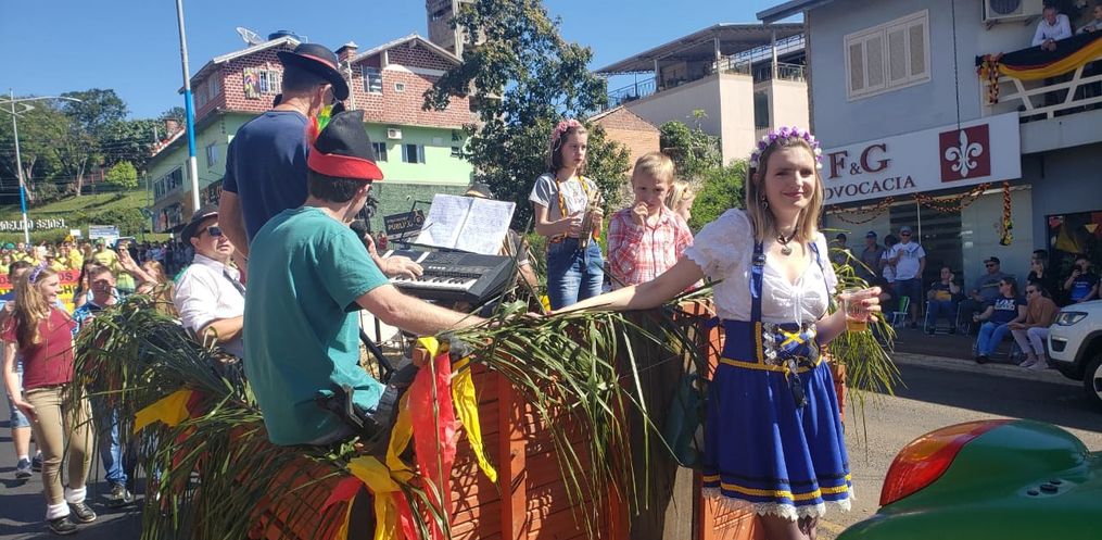 Na tarde deste sábado também foi realizado o desfile com resgate histórico da festa, reunindo diversas entidades e empresas do município e região. Um grande público prestigiou as apresentações na Avenida Gustavo Fetter e ruas paralelas.