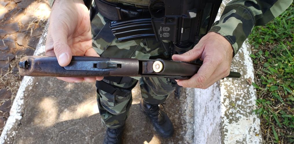 Segundo o delegado, na segunda-feira a espingarda foi usada no roubo a uma lanchonete no centro de Descanso e novamente nesta quinta-feira no assalto a família de linha Gaúcha.