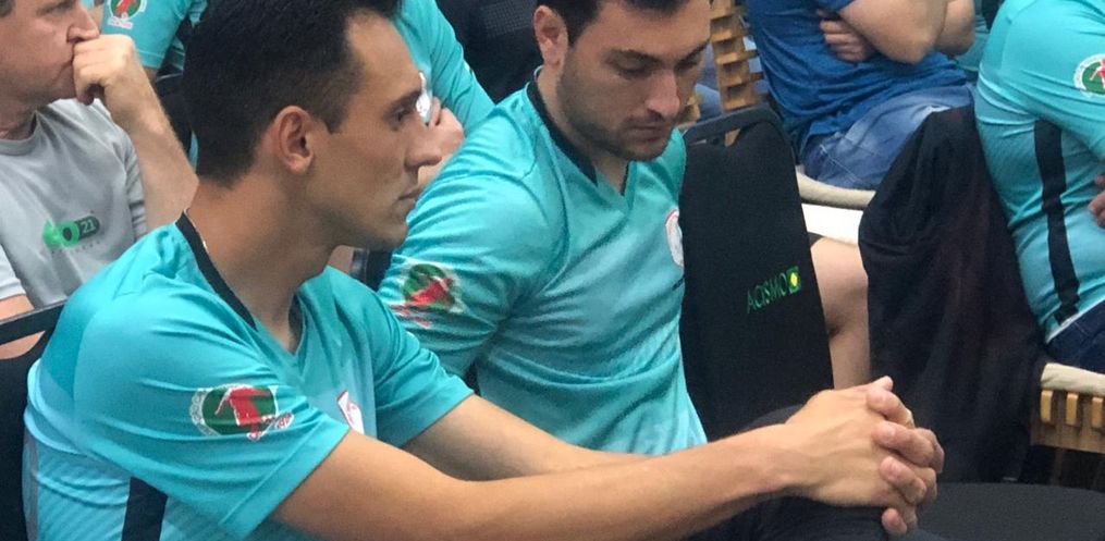 Luiz Alberto Kallemberger, membro da comissão de arbitragem da FCF, ex-árbitro assistente da FCF e instrutor da Escola Catarinense de Arbitragem Marco Martins.