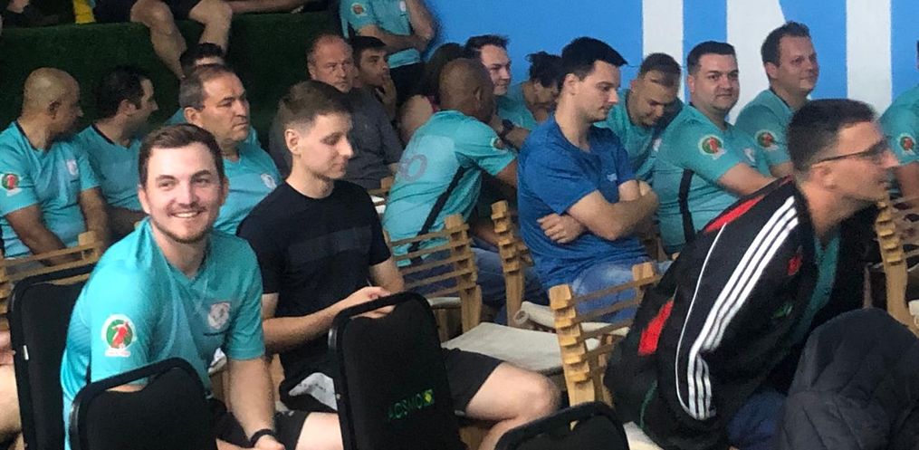 A parte teórica, no auditório da Acismo, trata das atualizações do ano 2024/2025 através das diretrizes que são criadas pela FIFA e IFAB e vídeos testes sobre disputas, entradas, uso indevido dos braços e impedimento.