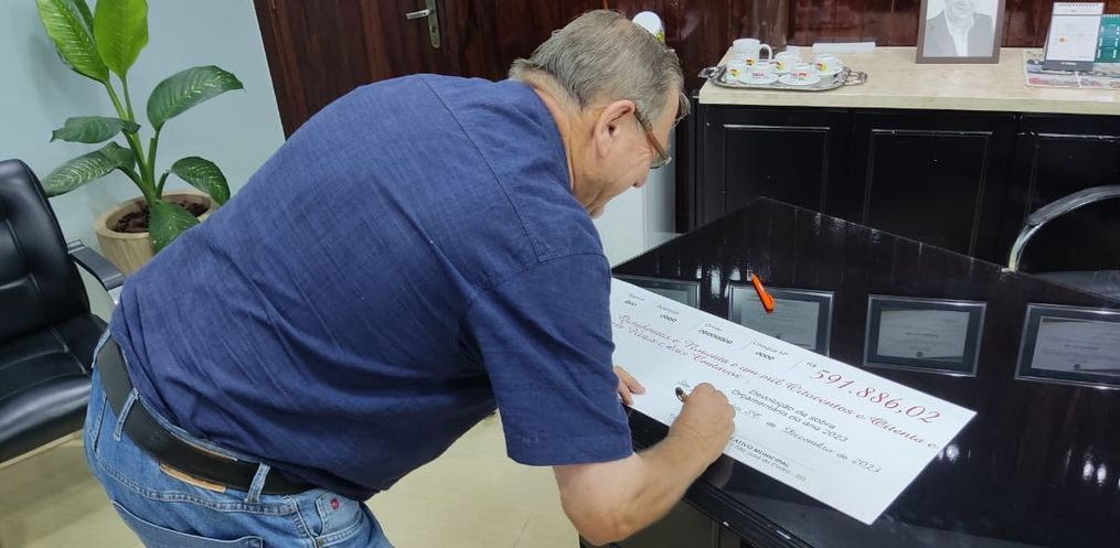 A Câmara de Vereadores de São José do Cedro realizou a entrega de um cheque no valor de R$591.886,02 reais, referente às sobras dos repasses realizados pela administração durante o ano de 2023.