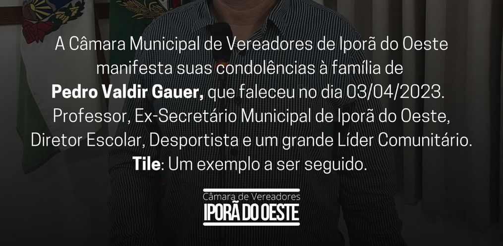 A Câmara de Vereadores publicou nota de pesar, na qual afirma que Tile é um exemplo a ser seguido. Também manifesta suas condolências à família de Pedro Valdir Gauer, Professor, Ex-Secretário Municipal de Iporã do Oeste, Diretor Escolar, Desportista e um grande Líder Comunitário, que faleceu no dia 03/04/2023.