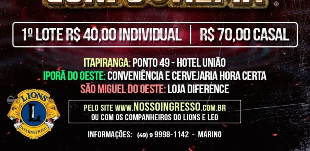 O Lions Clube de Itapiranga já realizou um evento comemorativo aos 50 anos, na data do aniversário, em 27 de abril, com participação do Lions de São Miguel do Oeste, que é padrinho do clube de Itapiranga. Esta semana teve homenagem na Câmara de Vereadores em reconhecimento pelas cinco décadas de serviços prestados. Marino Spies lembra que todos os integrantes possuem dedicação voluntária em prol de pessoas mais necessitadas. Segundo o Presidente, o reconhecimento do Poder Legislativo é importante para marcar os 50 anos do clube. Spies destaca que nesta sexta-feira, 10, terá evento beneficente no Complexo para encerrar as comemorações. A partir das 21h30 terá baile com a Banda Corpo e Alma e já com presença garantida de grande público devido a venda antecipada de ingressos.