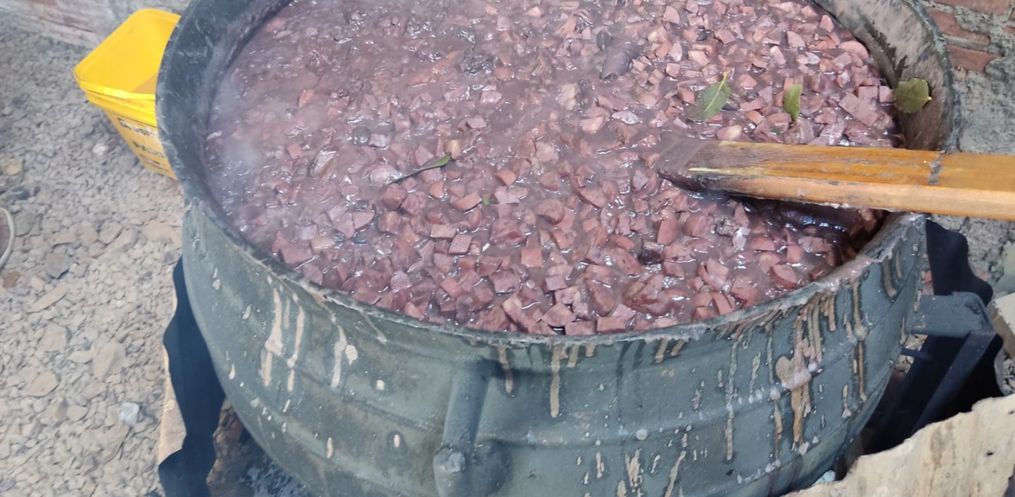 Segundo Edemar Carlos Junges, Presidente do Lions Clube Renascer de São José do Cedro, no início desta manhã, na Gruta São Cristóvão, se iniciou o trabalho para que a feijoada pudesse estar pronta para o almoço.