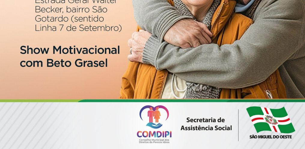 O II Fórum da Pessoa Idosa de São Miguel do Oeste será realizado no dia 29 de novembro na Latitude Eventos, com previsão de participação de mais de 1.000 idosos. O evento, organizado pela Secretaria de Assistência Social e pelo Conselho Municipal dos Direitos da Pessoa Idosa (COMDIPI), promete uma tarde de integração e lazer voltada ao público idoso, com programação que inclui Show Motivacional de Beto Grasel e música ao vivo.