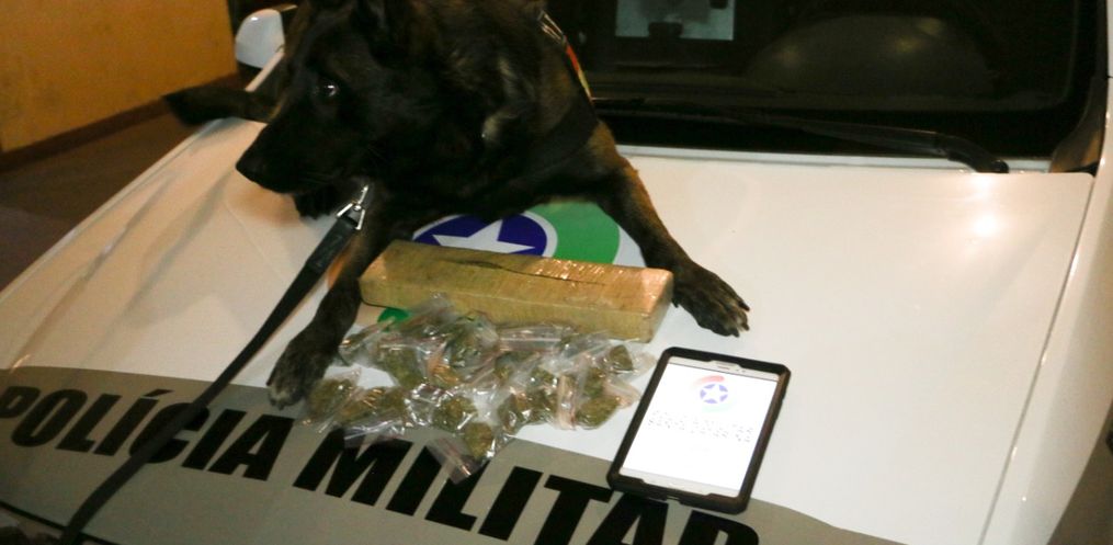 O Grupo de Policiamento com Cães realizava o patrulhamento em área conhecida pelo tráfico de drogas, quando aplicou o cão de faro numa área de mata e o cão encontrou maconha escondida, sendo um tablete grande e 27 buchas de maconha prontas para a venda, as quais totalizaram mais de um quilo.