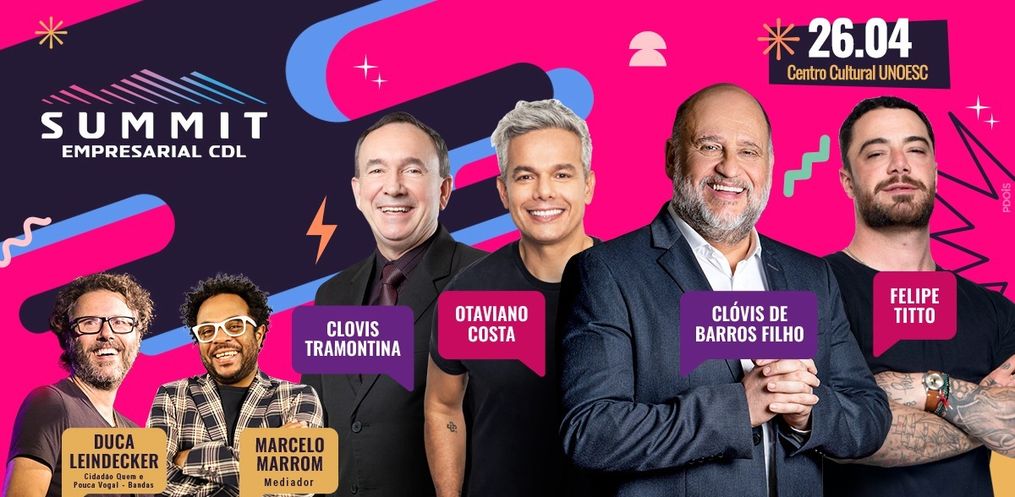 A programação do evento conta com mais de 8 horas de imersão, com quatro palestras nacionais: Otaviano Costa, Clóvis de Barros Filho, Felipe Titto e Clovis Tramontina e dois cases de sucesso regionais são os destaques da programação do evento. Para completar a experiência e as novidades, o Summit Empresarial será apresentado por Marcelo Marrom. Para encerrar a programação está programado um show acústico com Duca Leindecker.