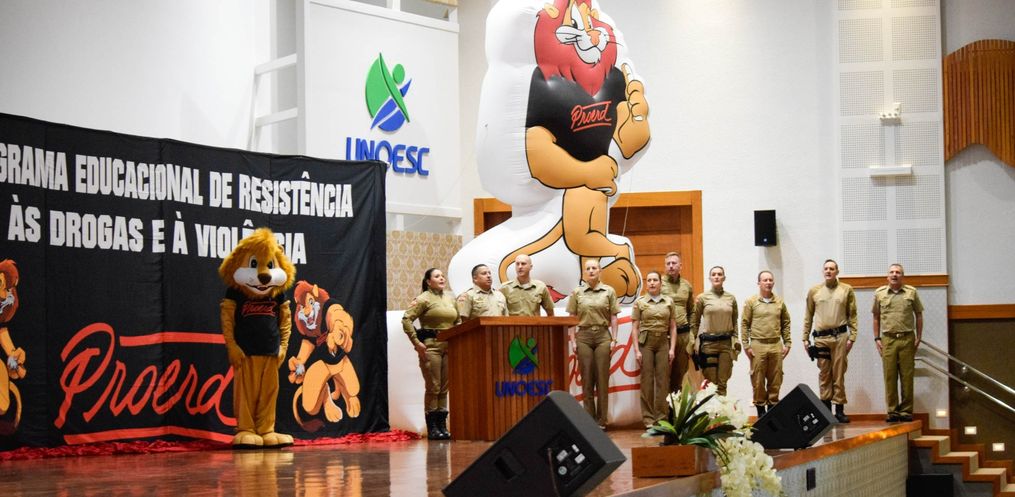 Na manhã desta terça-feira, 06, foi realizada a formatura do Programa Educacional de Resistência às Drogas e a Violência, PROERD, evento que foi realizado no Centro Cultural da UNOESC em São Miguel do Oeste, e envolveu 553 estudantes.