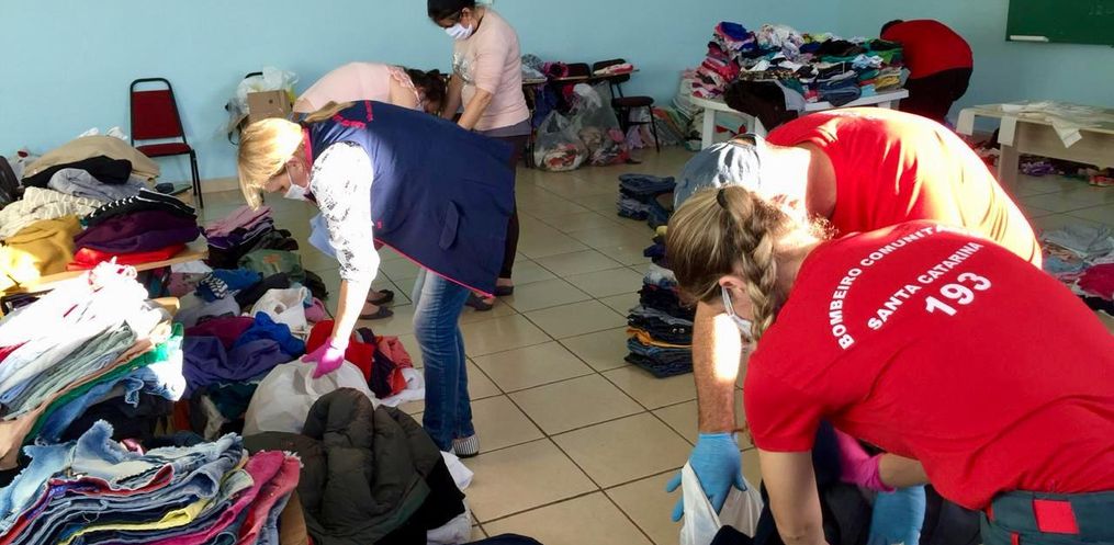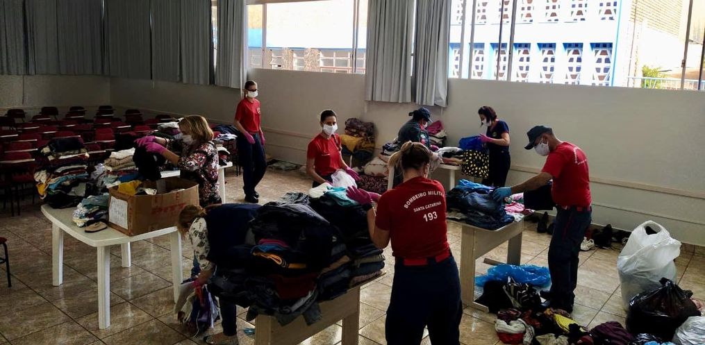 Em São Miguel do Oeste, o Corpo de Bombeiros Militar arrecadou 2.541 peças em condições de doação, dentre as quais encontram-se roupas de inverno (blusões, jaquetas, calças, cachecóis), cobertores, roupas de cama e banho, calçados, roupas infantis e peças de verão.