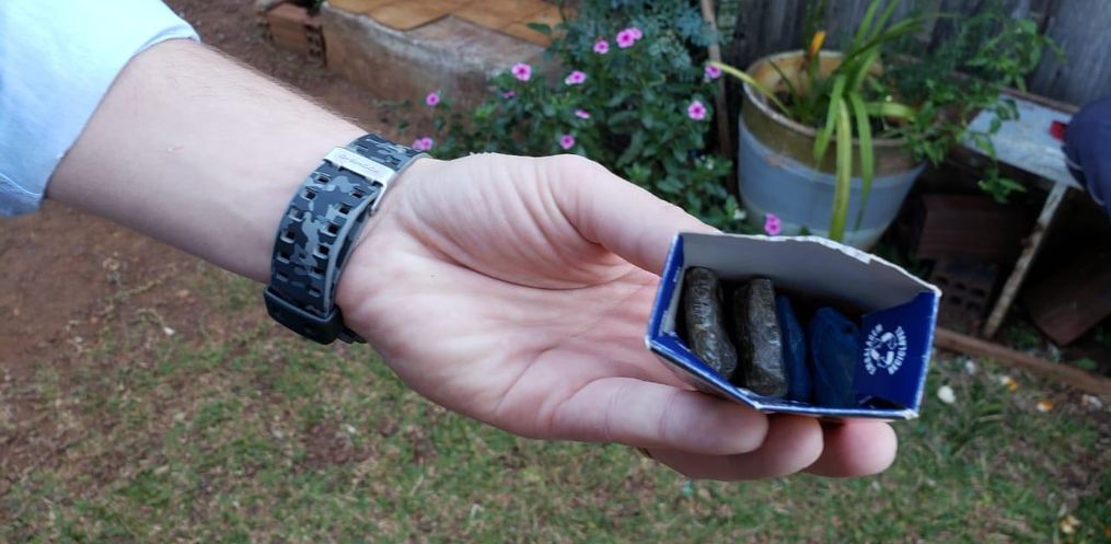 Após relatório policiais, houve representação por buscas, sendo que, na tarde hoje, foi executada a ordem, sendo encontrada diversas porções de maconha, fracionadas e prontas para a venda e dinheiro proveniente do narcotráfico.