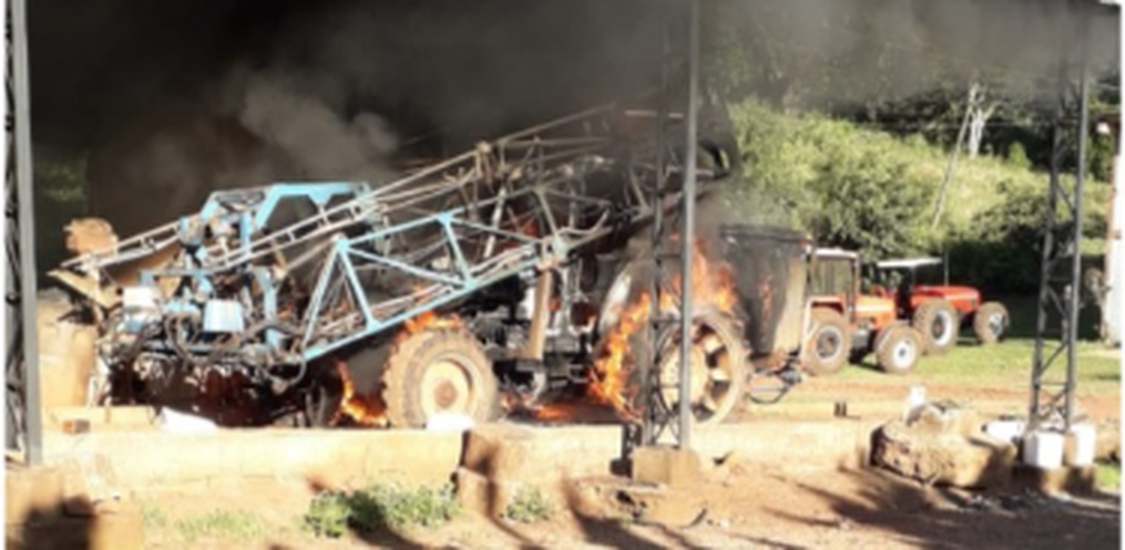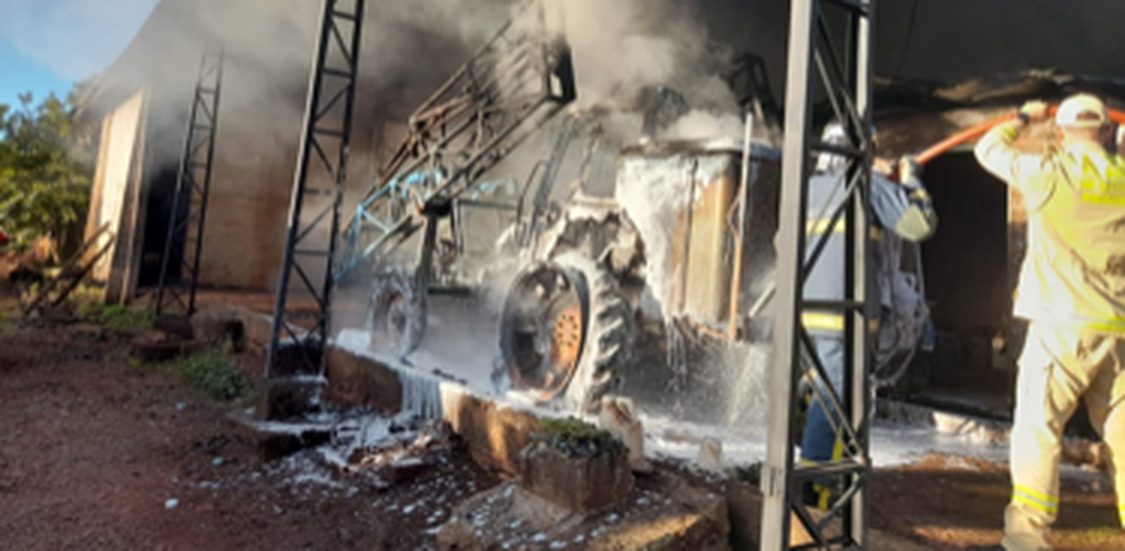 Um trator que tinha um pulverizador acoplado foi completamente destruído pelo fogo na tarde deste sábado, 16, na comunidade de Linha Planalto, em Renascença/PR, deixando um grande prejuízo ao proprietário.