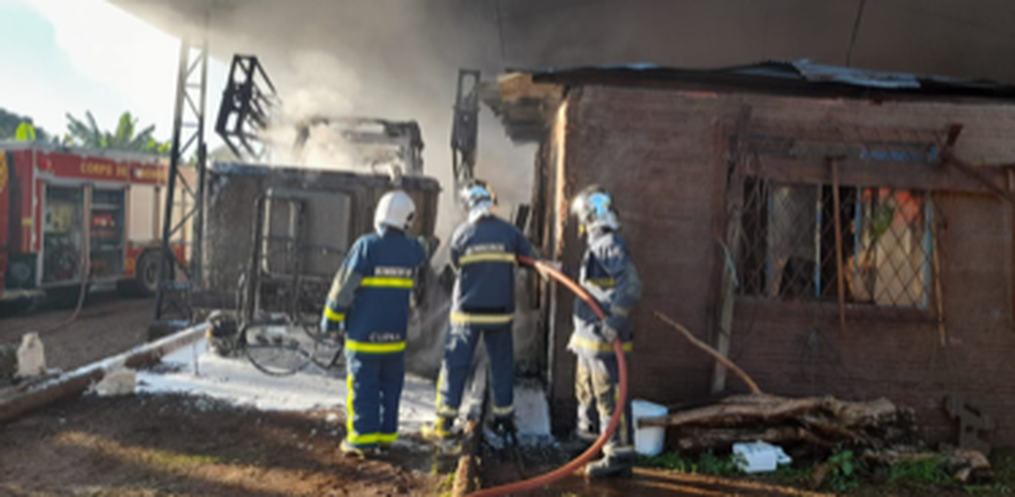 O Corpo de Bombeiros foi acionado e realizou o combate as chamas e o rescaldo.