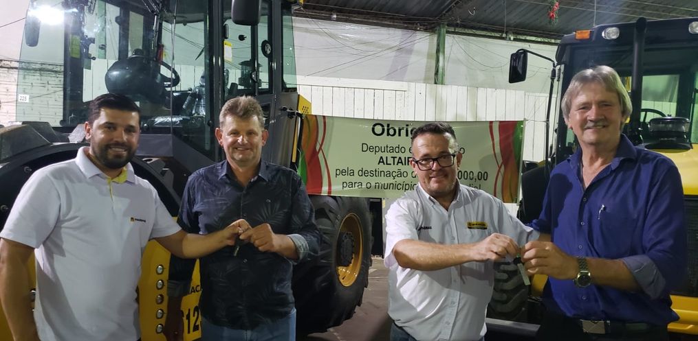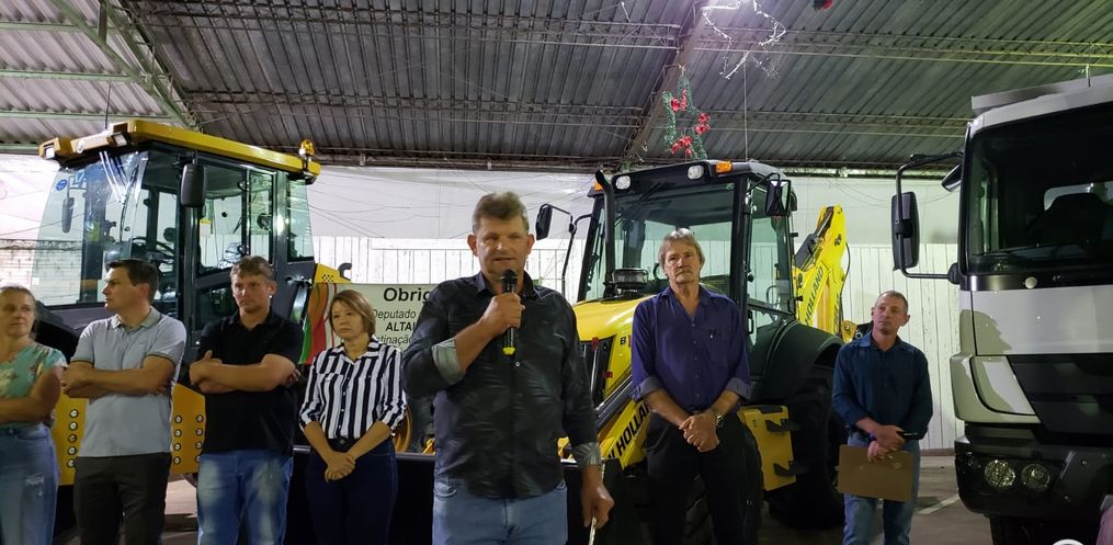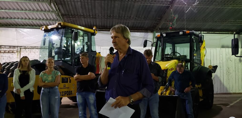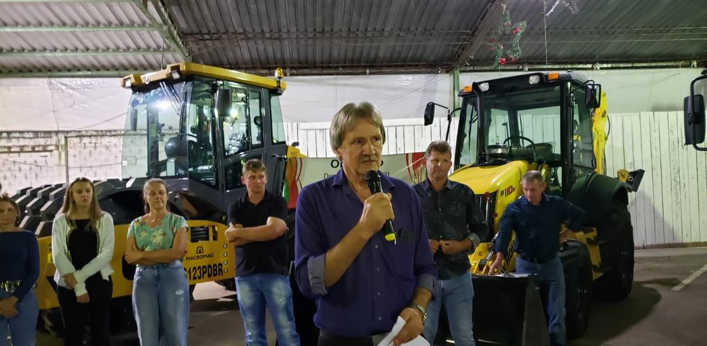 Na oportunidade, o Prefeito Marino Frey realizou a entrega de um rolo compactador, um caminhão caçamba, um tanque para transporte de água, uma retroescavadeira e um ônibus escolar, com investimentos que totalizam R$ 2 milhões.