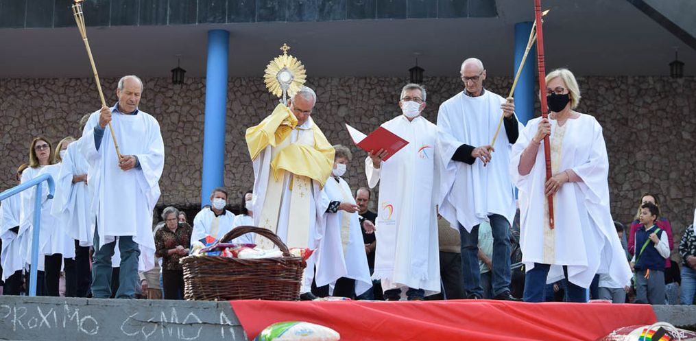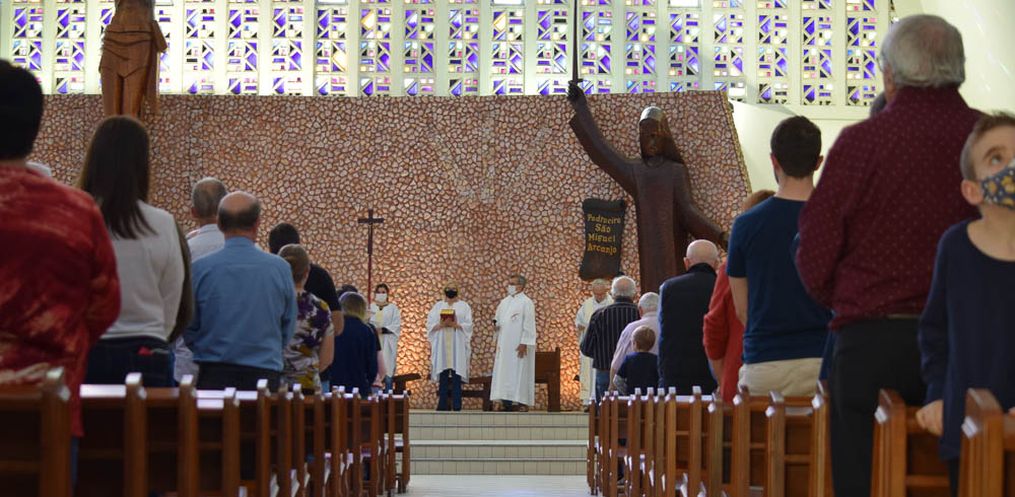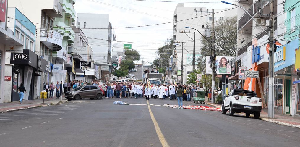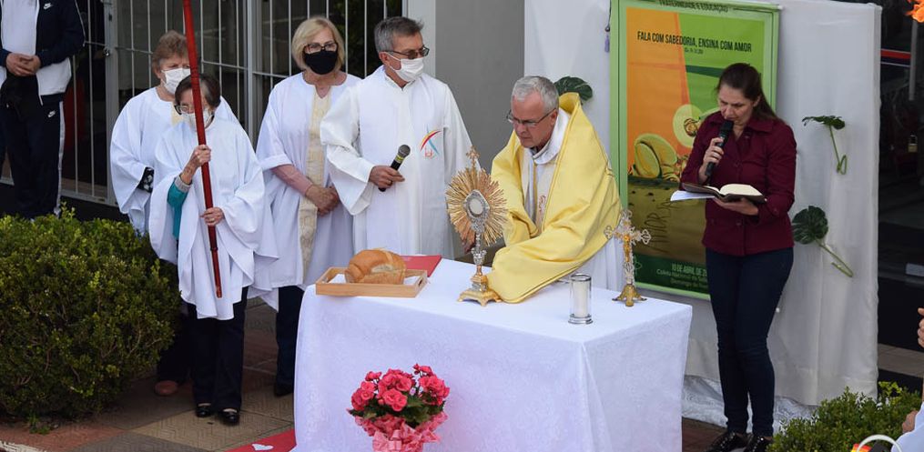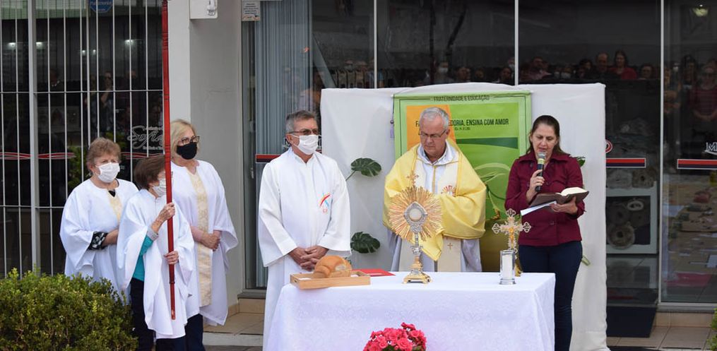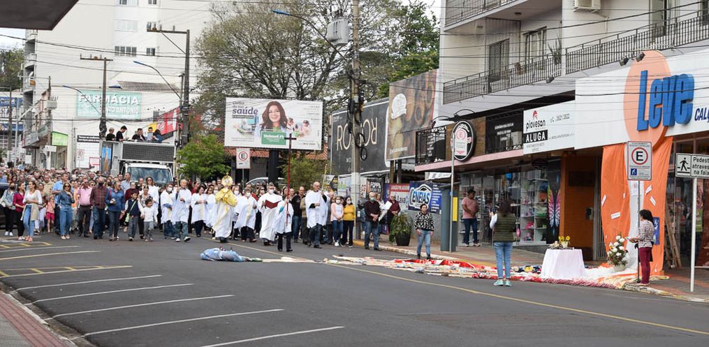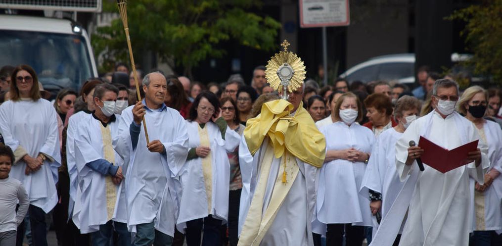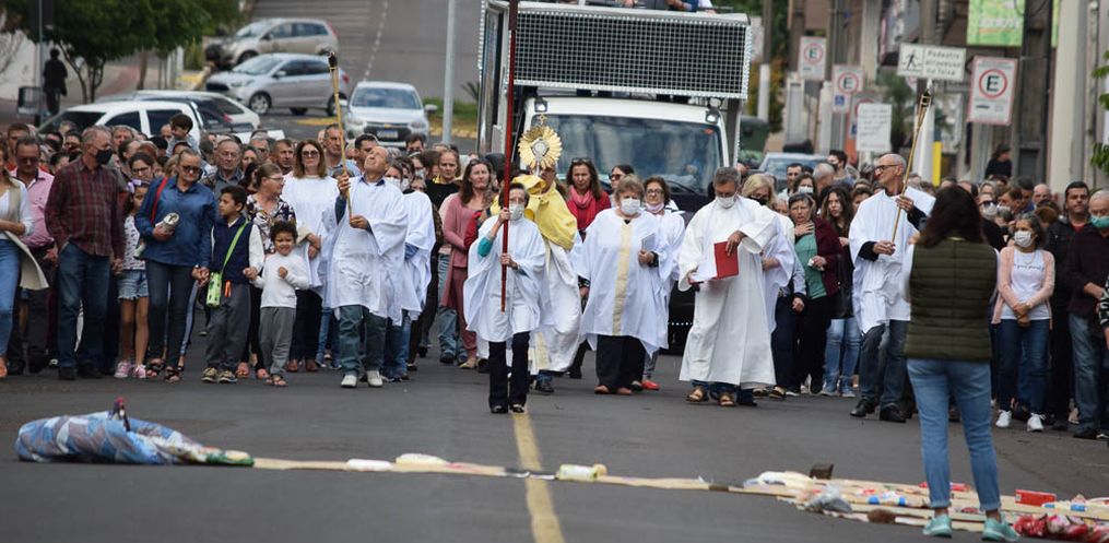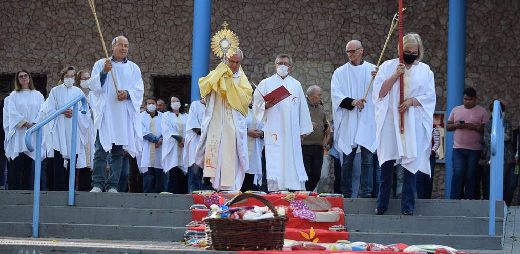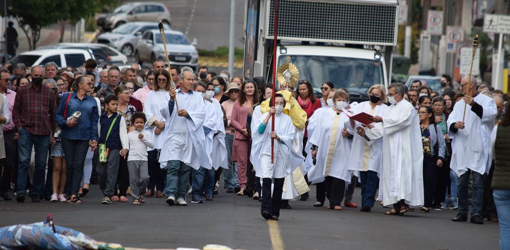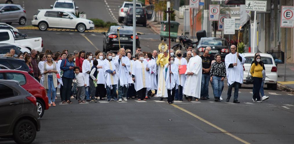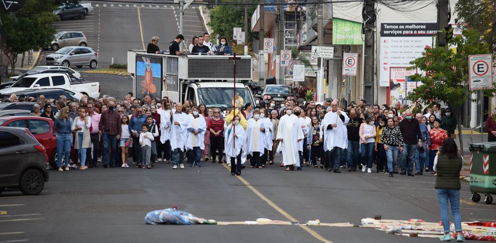 A Igreja Matriz São Miguel Arcanjo realizou na tarde desta quinta-feira, 16, após dois anos por causa da Covid-19, a tradicional Missa e Procissão de Corpus Christi. A celebração contou com a presença de muitos fiéis e a procissão foi realizada na quadra em torno da Matriz.
