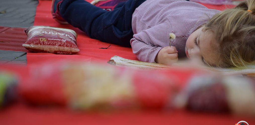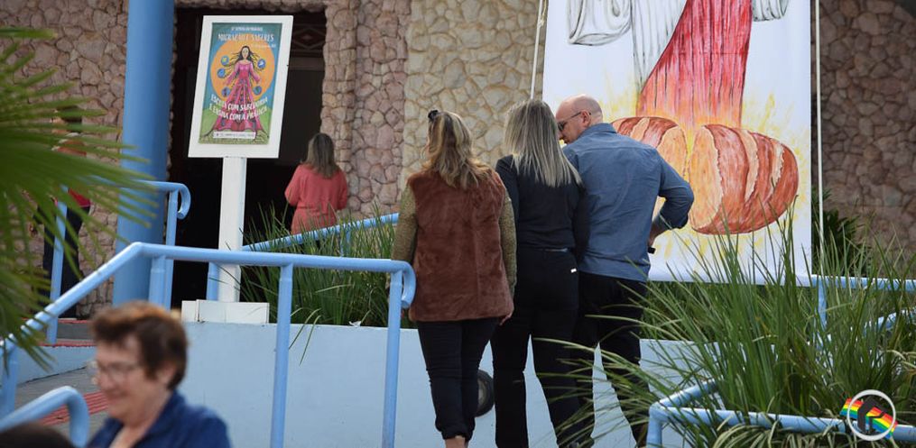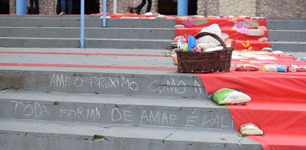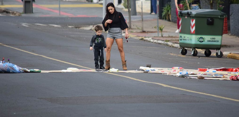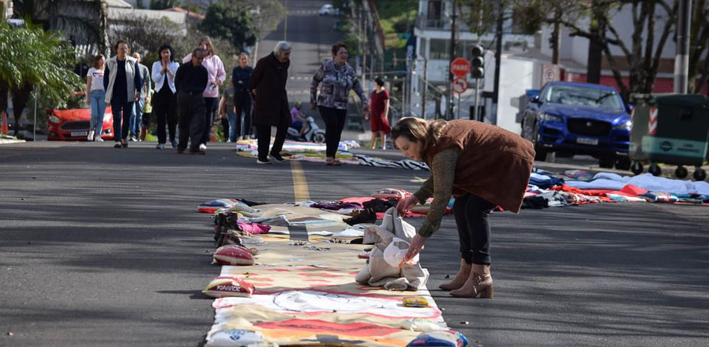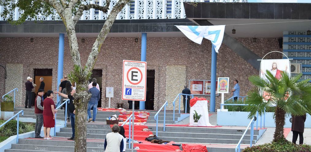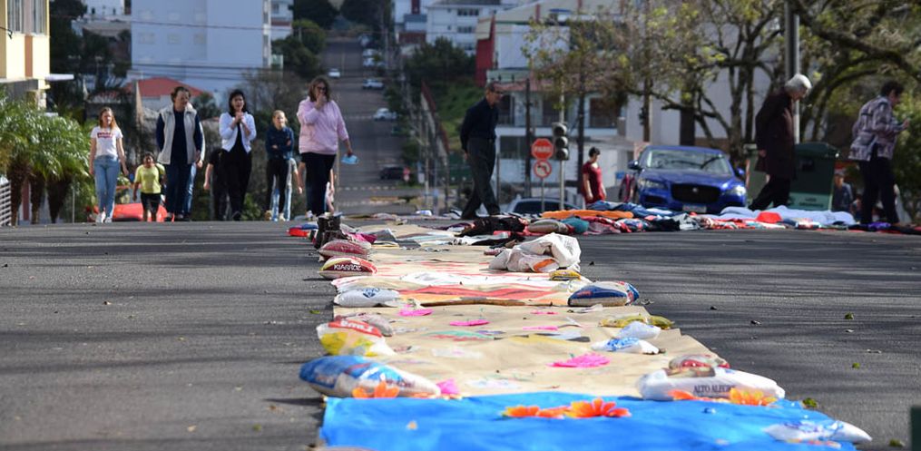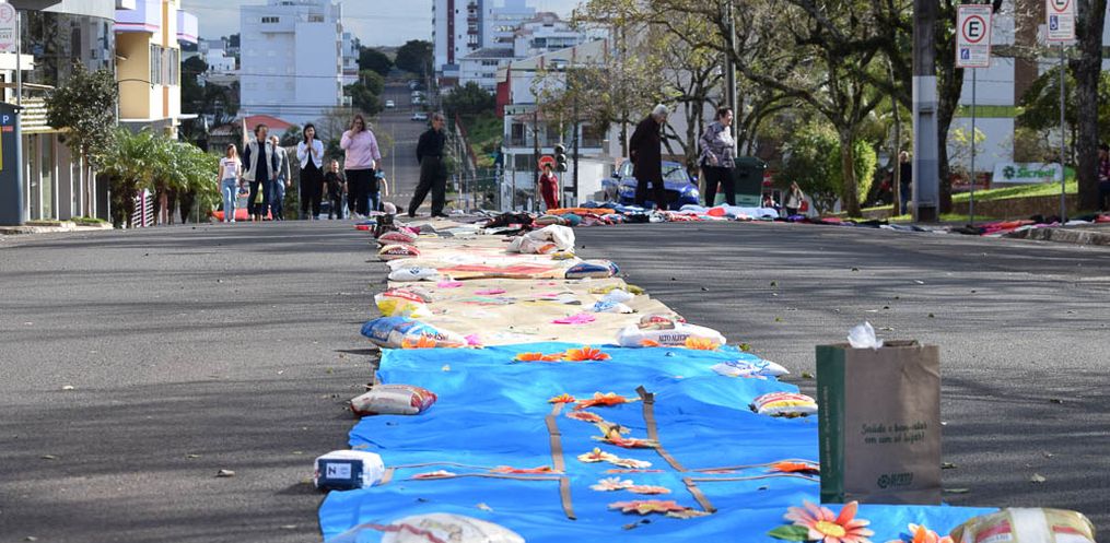 Houve também a confecção dos tradicionais tapetes solidários montados com roupas e alimentos.