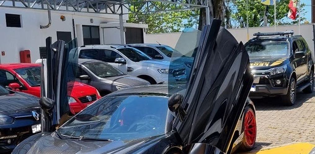 A Polícia Federal apreendeu na manhã desta sexta-feira, 11, em Balneário Camboriú um McLaren 570S Spider, superesportivo cujo preço pode chegar a R$ 4 milhões. A apreensão foi determinada pela Justiça Federal do Mato Grosso e integra a segunda fase da Operação Argentarius, que tem como alvo uma organização suspeita de funcionar como “banco do crime”. Segundo a PF, o grupo é teria financiado ações do tráfico de drogas, contrabando de agrotóxico, roubo e adulteração de carga de insumos agrícolas.