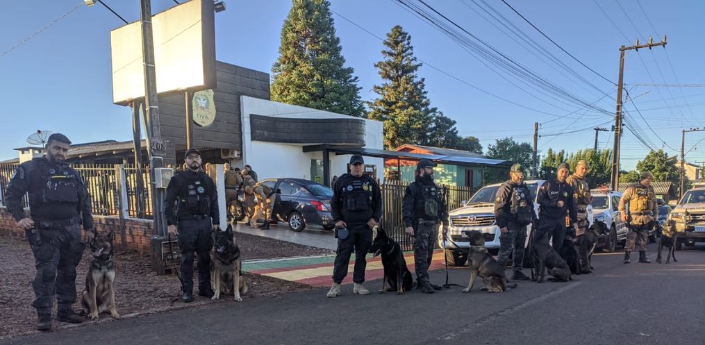 Foram empregadas na ação 50 viaturas e 140 Policiais Militares e Policiais Civis de Santa Catarina e do estado do Paraná, equipes do SAER/FRON, o Núcleo de Operações com Cães da Polícia Civil de Santa Catarina, do Paraná e do Canil Setorial da Polícia Militar.