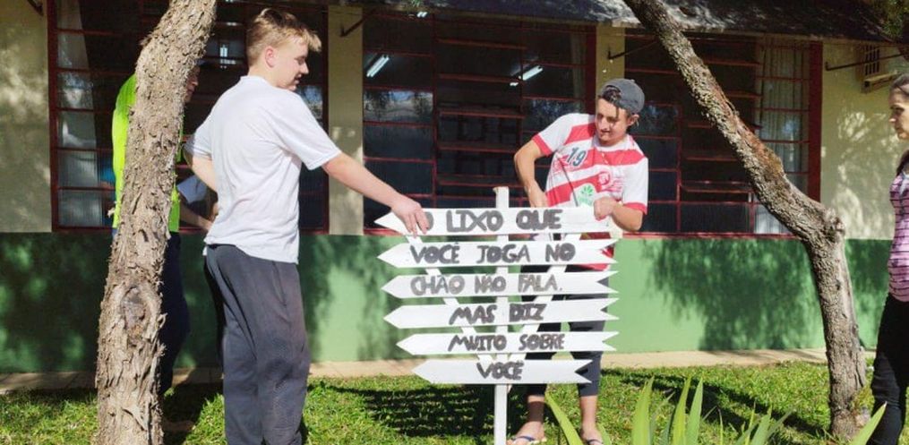 Ontem, segunda-feira, os alunos realizaram a fixação destas placas, em pontos da área urbana. O conteúdo chama cada cidadão para a sua responsabilidade, e de como, pequenas ações, quando somadas, produzem efeitos positivos ao meio ambiente.