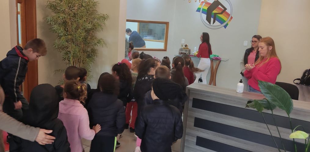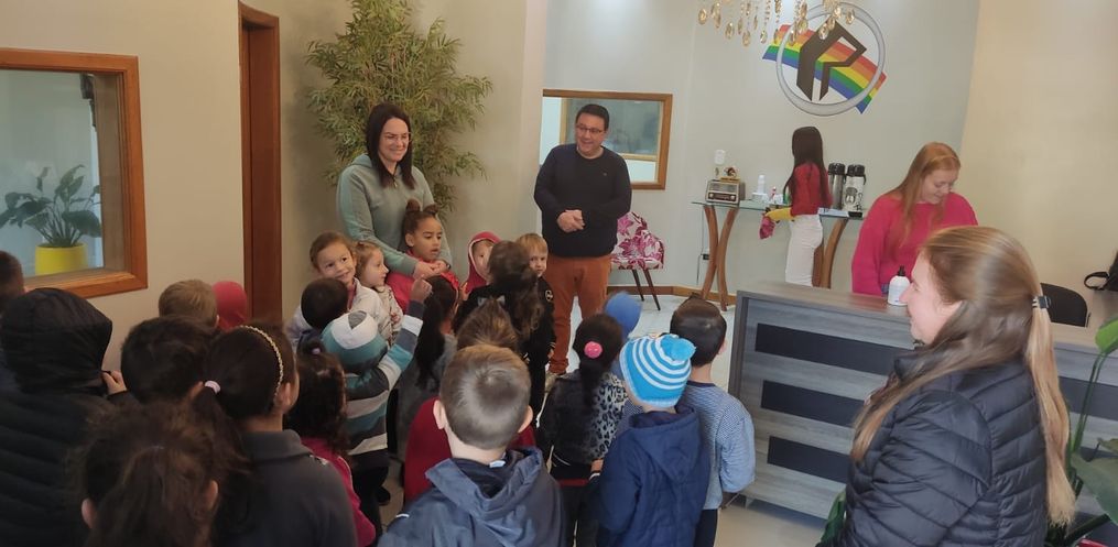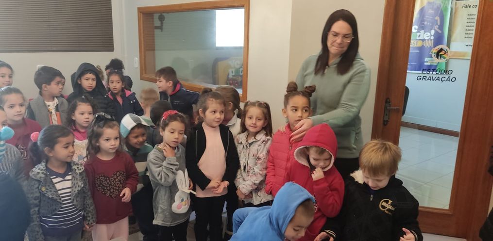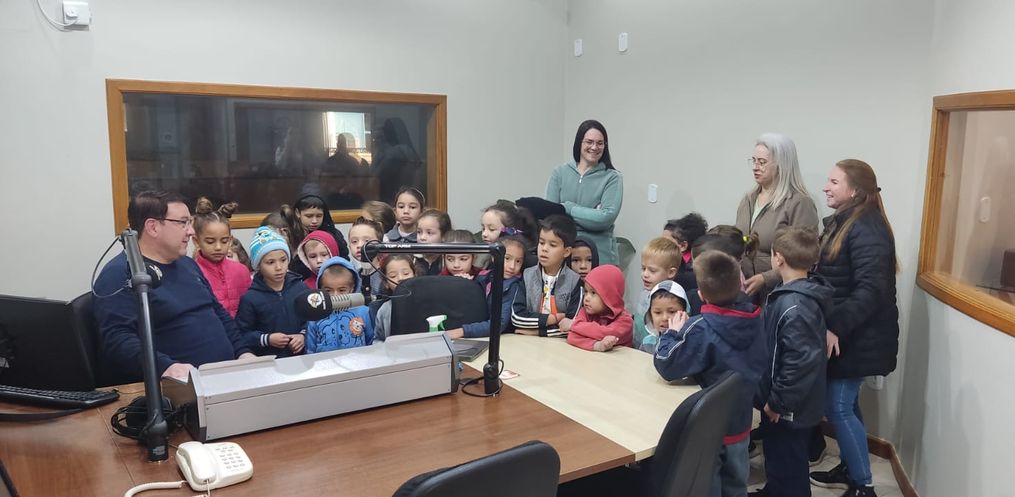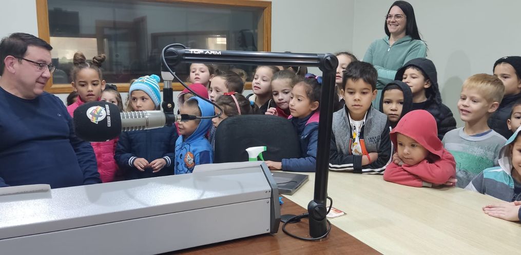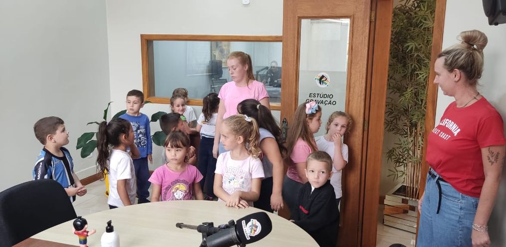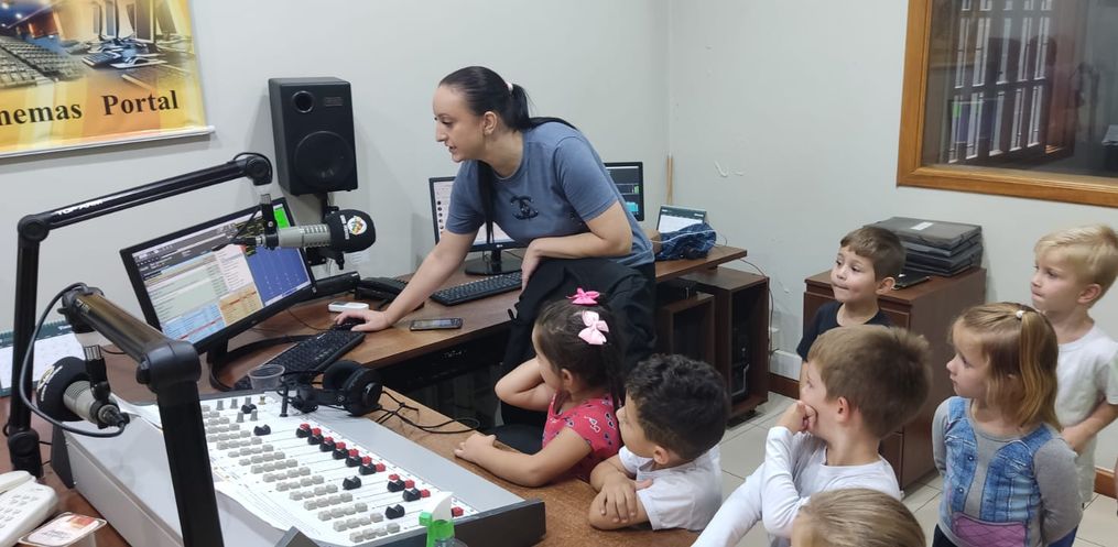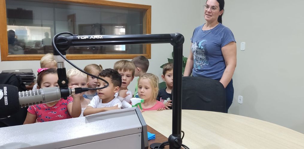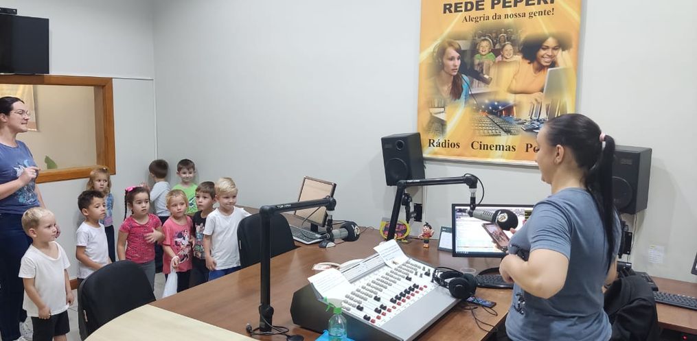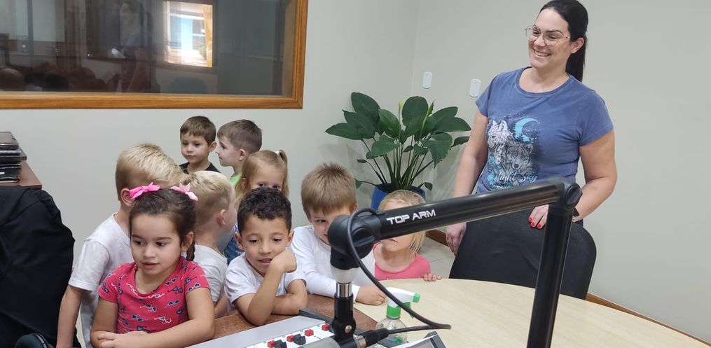 Além de ter atividades em sala de aula, a direção da escola, oportunizou que as crianças pudessem conhecer a Rádio.
