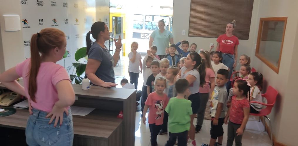 A visita dos alunos da escola de São José do Cedro, aos estúdios da Rádio Cedro, emissora da Rede Peperi, aconteceu na última sexta, 05. A Diretora do educandário Vera Schmitz, afirma que os cerca de 26 alunos das turmas do Jardim e Pré, tiveram a oportunidade de realizar a visita na emissora.