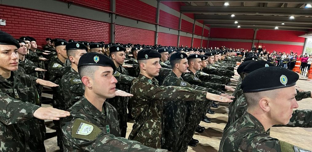 Militares incorporados nesse ano nas fileiras do Exército Brasileiro prestaram juramento à Bandeira Nacional na manhã dessa sexta-feira, 23, em solenidade alusiva ao Dia do Soldado realizada no 14º Regimento de Cavalaria Mecanizado, em São Miguel do Oeste.