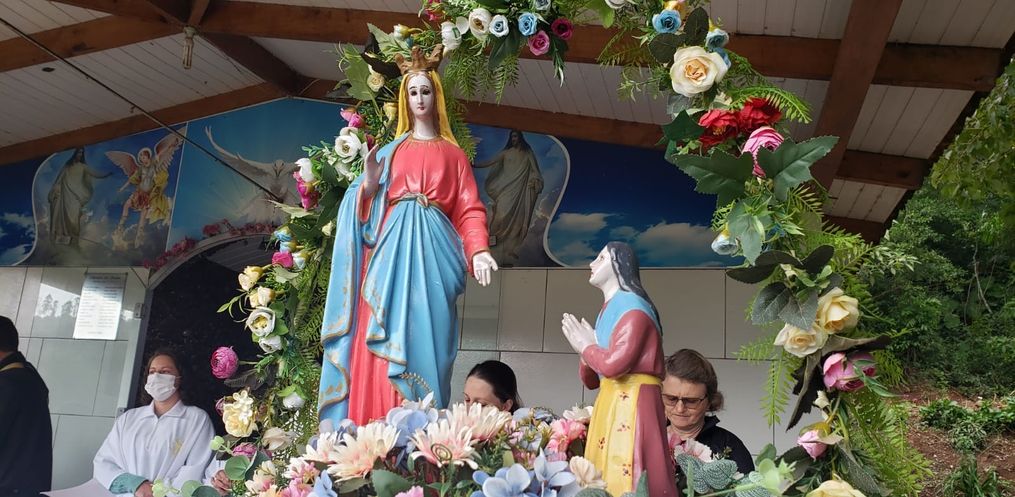A comunidade de Linha Pirapó, interior de Iporã do Oeste, realizou na manhã desta quinta-feira, 26, uma missa em honra ao dia da padroeira Nossa Senhora do Caravaggio. O padre, Ilton Goettems, fez a celebração que foi assistida por um grande número de fiéis.