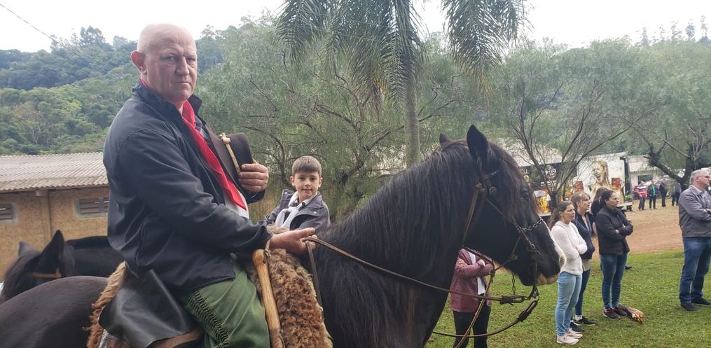 A tradicional festa da padroeira Nossa Senhora do Caravaggio iniciou com a procissão dos devotos no trecho entre o cemitério da Linha Cabeceira do Taquarussú e a comunidade de Pirapó, onde foi celebrada a Santa Missa festiva.