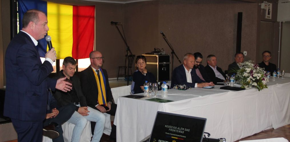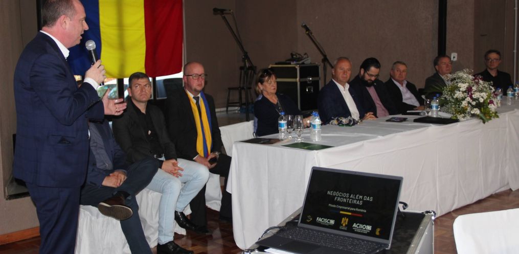 O município de Iporã do Oeste recebeu um evento organizado pelo Consulado Geral Honorário da Romênia, em parceria com a Associação dos Romenos Bessarabianos do Extremo-Oeste catarinense, nesta segunda-feira, 29. Na oportunidade foi feito o lançamento da Missão Empresarial “Negócios Além das Fronteiras: Missão Empresarial para a Romênia”, que tem o objetivo de ampliar fronteiras e abrir negócios entre empresas catarinenses e romenas.