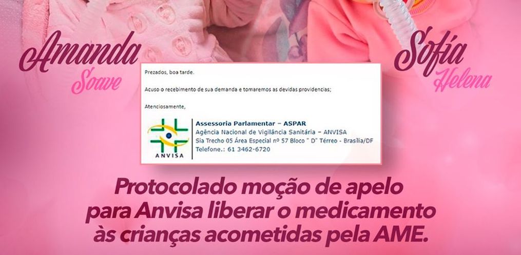 O parlamentar pede a liberação do zolgensma, um medicamento de valor milionário que possibilita a cura das crianças acometidas pela atrofia muscular espinhal, a AME.