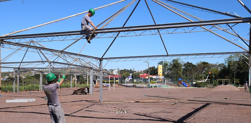 O presidente da Comissão Central Organizadora da 10ª FAIC salienta que nessa semana foram iniciados os trabalhos de instalação elétrica e montagem da estrutura dos estandes. De acordo com Wilson Mallmann, ao todo serão 210 estruturas para 180 empresas que estarão expondo seus produtos e serviços nos quatro dias de feira. O pavilhão de exposição da agricultura também já foi finalizado e agora será iniciada a instalação das divisórias para abrigar os bovinos.