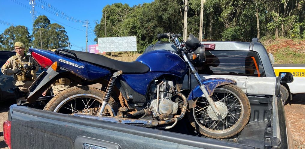 Uma motocicleta furtada de uma oficina e revenda de peças em São Miguel do Oeste foi encontrada na manhã desta terça-feira, 29, no município. A moto foi abordada por populares nas proximidades do trevo da BR 282. Eles acionaram a Polícia Militar e a Polícia Rodoviária. O homem que estava conduzindo a motocicleta foi detido e levado para a Delegacia de Polícia.