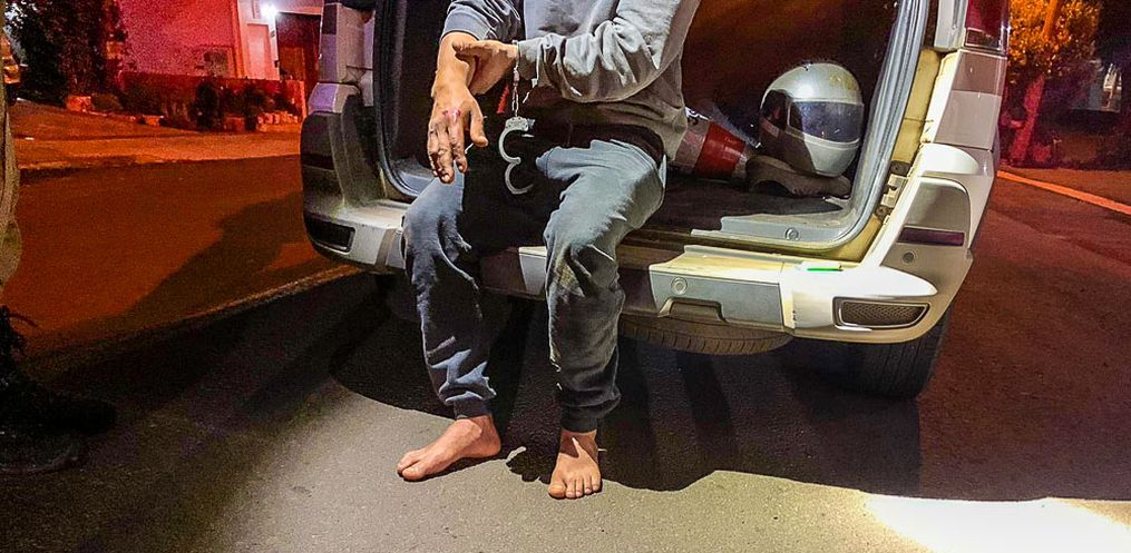 De acordo com a PM, a guarnição avistou a motocicleta e ao tentar realizar a abordagem, o homem fugiu em alta velocidade, em seguida ele perdeu o controle caiu, e ainda tentou fugir a pé dos militares.