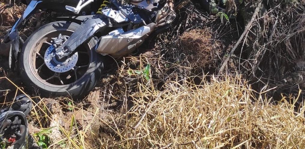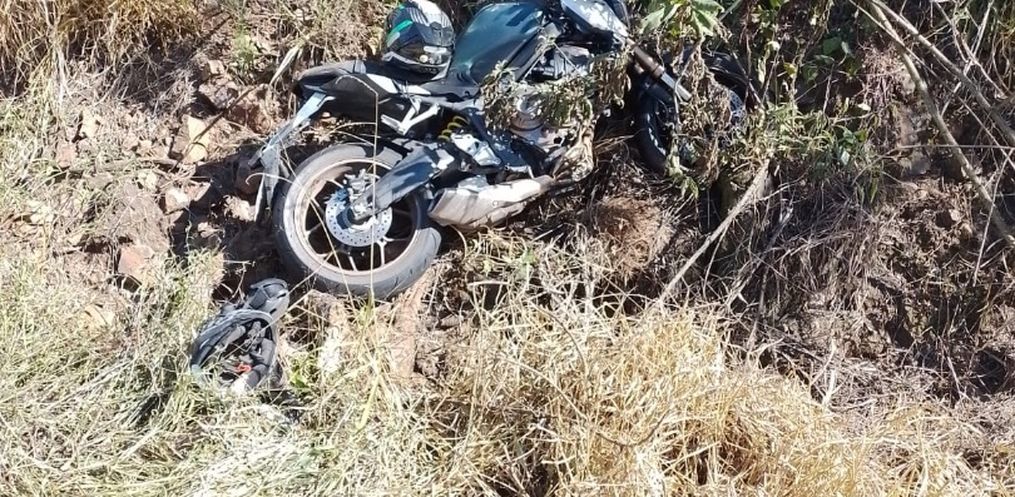 O condutor da Motocicleta de 34 anos estava deitado, consciente orientado,apresentando fratura exposta em membro superior direito e suspeita de fratura em membro inferior esquerdo.