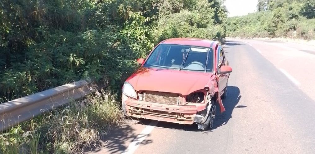 Chegando no local, foi constatado uma colisão lateral envolvendo um Motocicleta Honda de Canelinha e um Chevrolet Prisma de Formosa do Sul.
