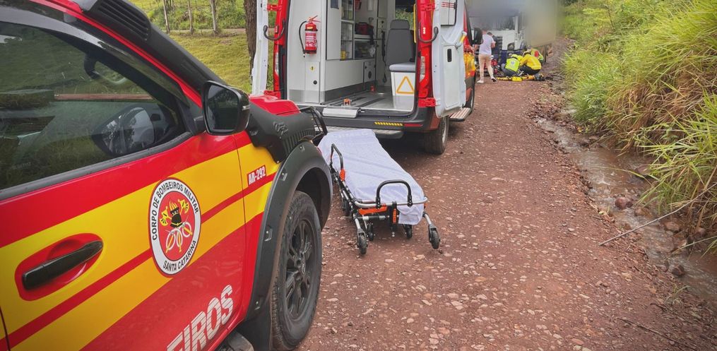 Um acidente de trânsito envolvendo um caminhão e uma motocicleta deixou um homem ferido por volta das 13h45 dessa terça-feira (8), na linha Jacutinga-Guamerim, no interior de São Miguel do Oeste.