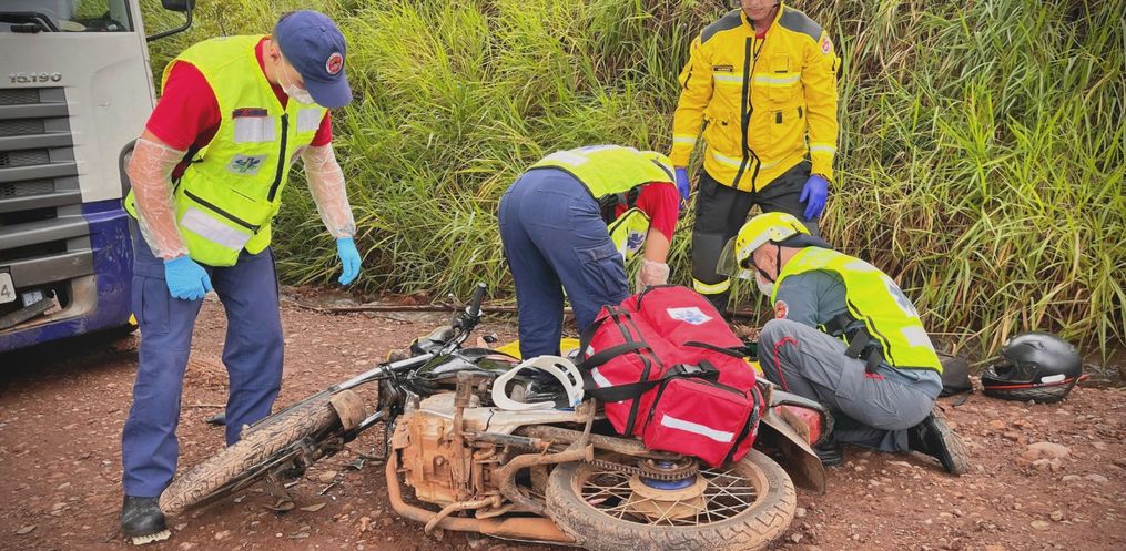 O Corpo de Bombeiros foi acionado e quando chegou ao local encontrou o motociclista deitado, com suspeita de fratura em uma das mãos e dores nas pernas. Ele recebeu os primeiros socorros, foi imobilizado e encaminhado ao Hospital Regional.