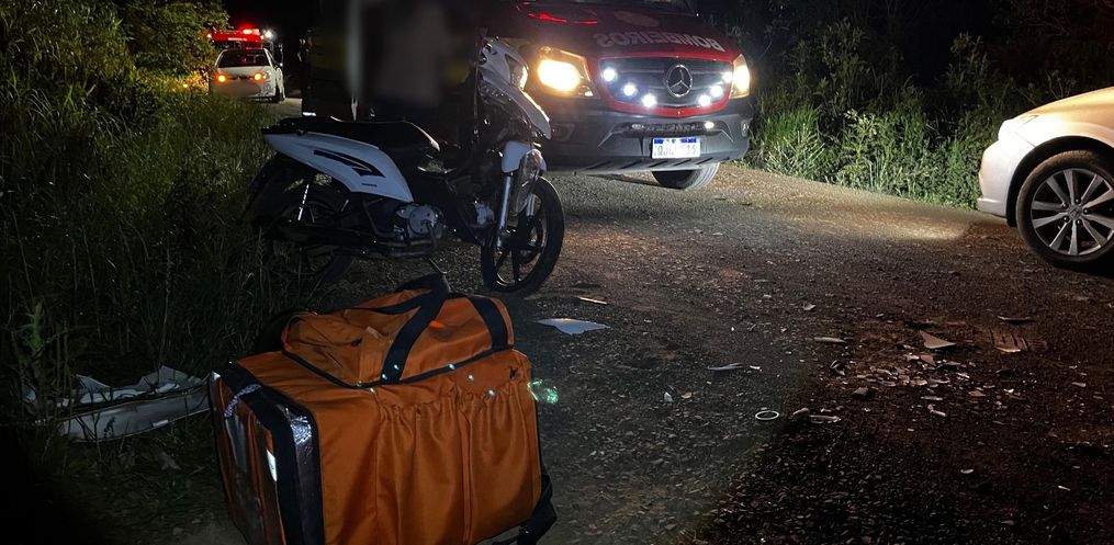 O Corpo de Bombeiros foi chamado e socorreu o condutor da moto, consciente e orientado. Ele foi encaminhado ao Hospital Regional. A camionete era ocupada apenas pelo condutor, que não se feriu.