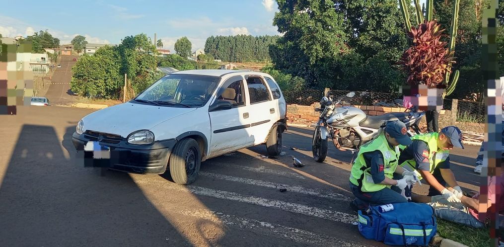 No final da tarde desta terça-feira, 18, por volta das 17h45, o Corpo de Bombeiros foi chamado para atender uma colisão entre um carro e uma moto na Avenida Bandeirantes, em Campo Erê, próximo do centro de especialidades de saúde.