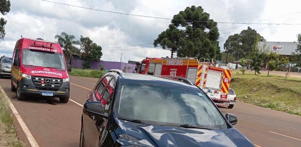 A ocorrência envolveu uma motocicleta Honda CG 150, com placas de Irani-SC, e um Chevrolet Equinox, com placas Mercosul. No local, os bombeiros constataram que o condutor da moto, um homem de 34 anos, estava consciente e orientado, mas apresentava fratura fechada na perna direita, ferimento e escoriações pelo corpo.