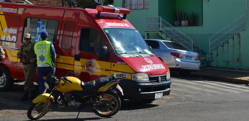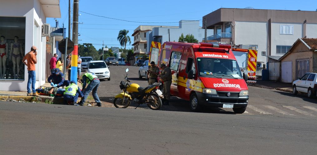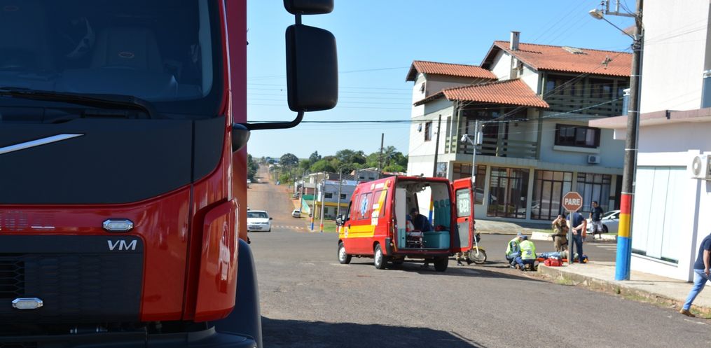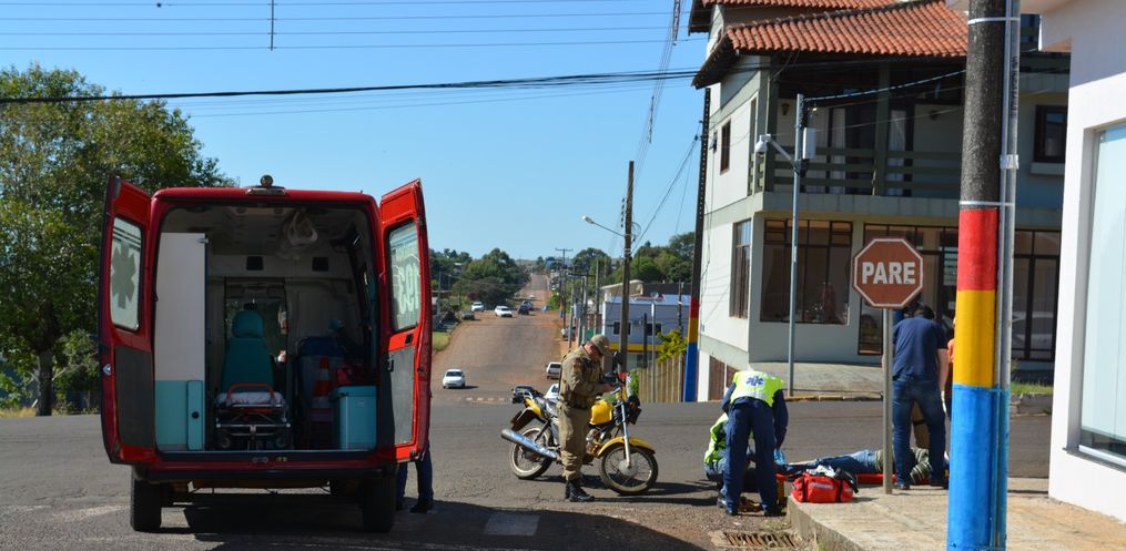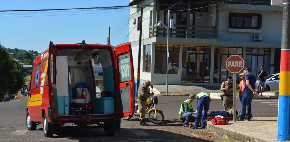 Um homem de 54 anos sofreu ferimentos após uma colisão entre carro e moto, na manhã desta segunda-feira, 09, na Avenida Astor Schoeninger, Centro de Campo Erê.