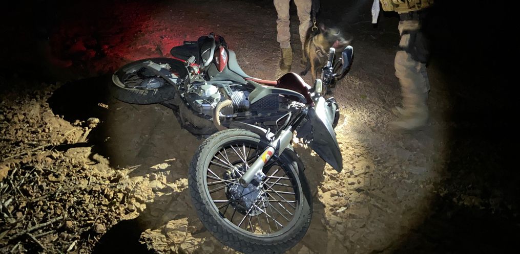 Durante a perseguição, o suspeito entrou em uma estrada de chão no Bairro Santa Rita, onde abandonou a motocicleta e fugiu a pé em direção a uma área de mata. As buscas foram iniciadas imediatamente pelas equipes da PM.